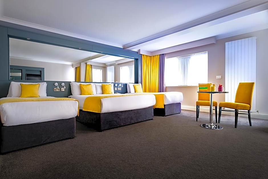 A spacious room boasting a plasma-screen TV, free WiFi, and crisp white bedding, as well as an private bathroom with a power shower. Guests can also make use of an express laundry service.